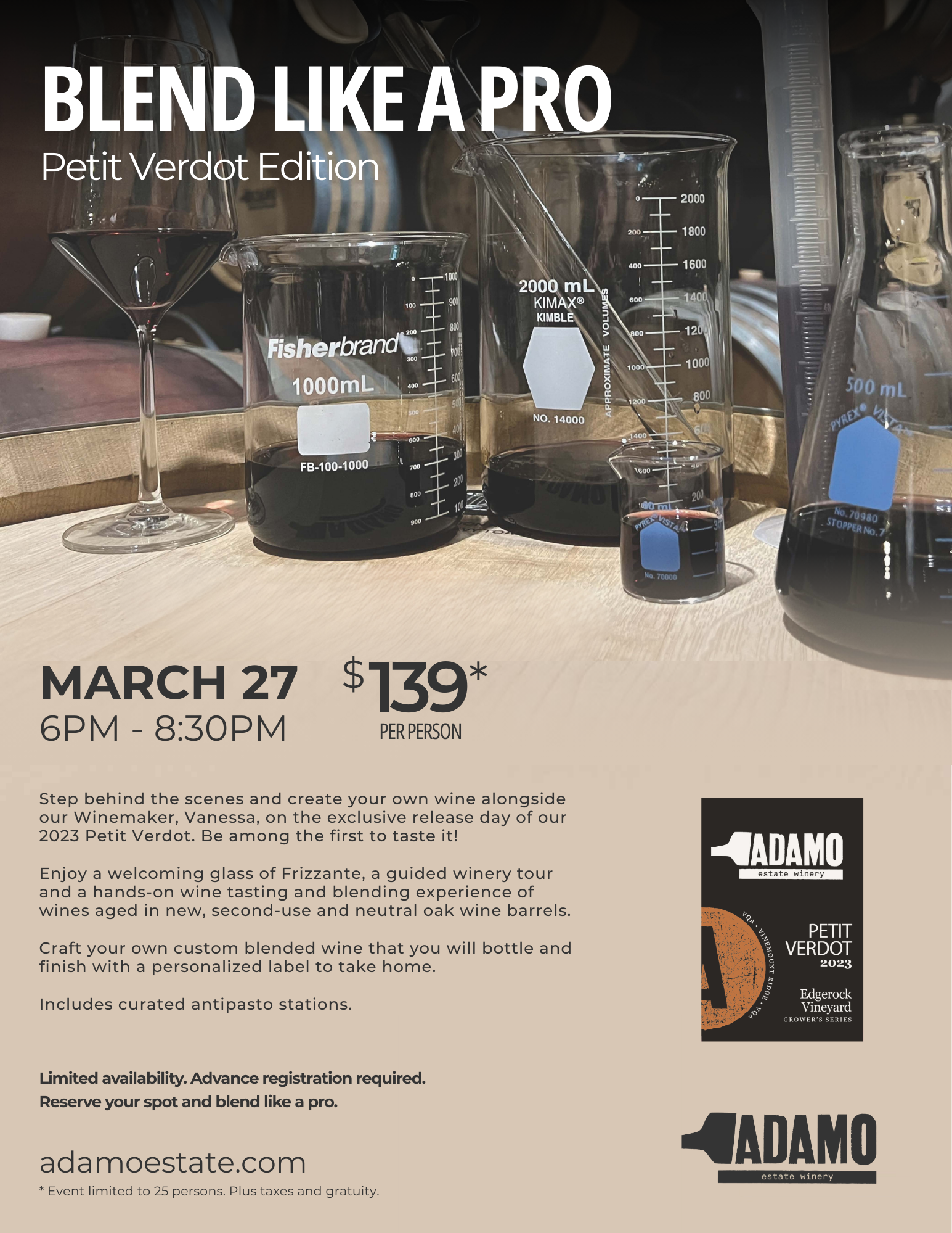 Step behind the scenes and create your own wine alongside our Winemaker, Vanessa, on the exclusive release day of our 2023 Petit Verdot. Be among the first to taste it!